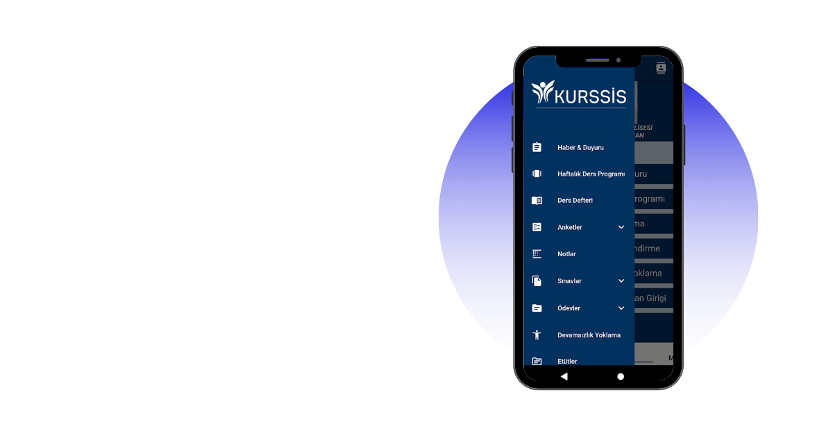 Kurssis kurs yönetim sistemine mobil uygulama ile erişebilirsiniz. Deneme sınavları, öğrenci bilgileri, haber, duyuru yayınlama, devamsızlık yoklama, etüt bilgilerine erişilebilir, anket yapabilirsiniz. Veliler ise deneme sınav sonuçları ve analizlere, devamsızlık, etüt ve ödeme bilgilerine mobil uygulama üzerinden erişebilir, anlık bildirimler alabilirler.