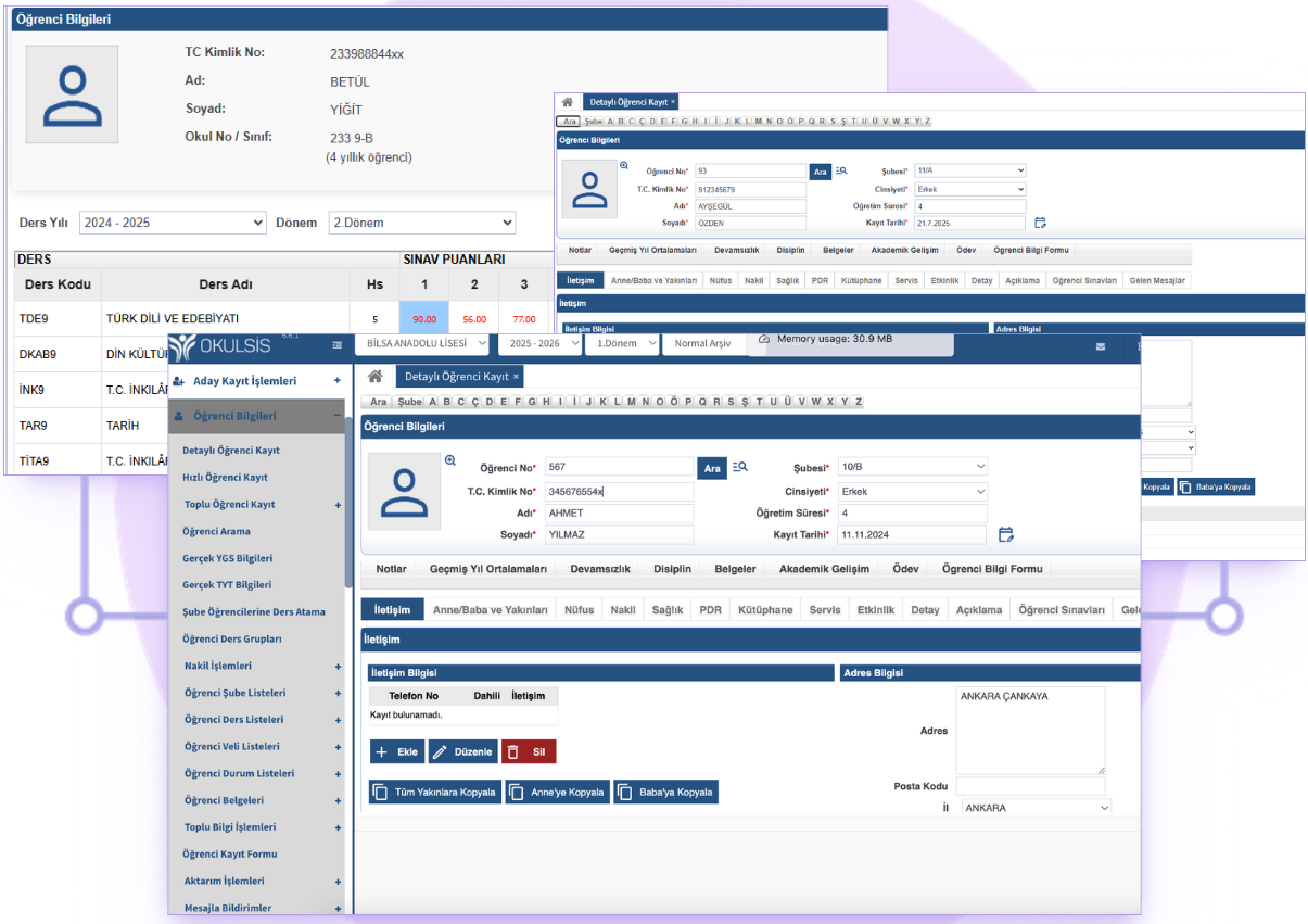 Bilsa Okulsis ile öğrenci ve veli bilgilerini detaylı olarak kaydedebilir, not ve devamsızlık işlemlerini yapabilir, tüm süreçlerden velilerinizi haberdar edebilirsiniz.