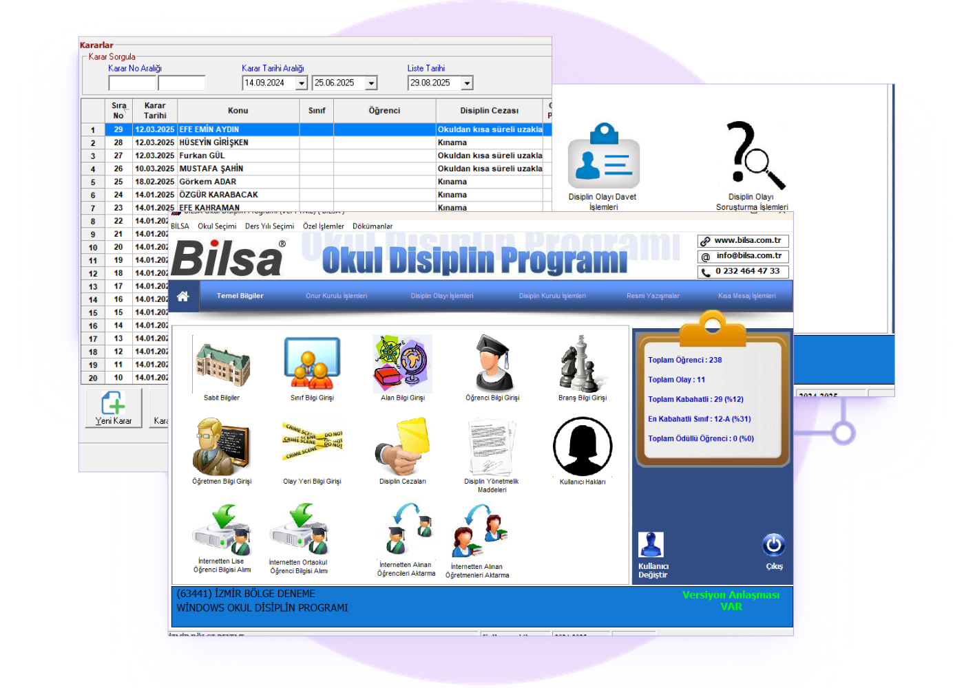 Bilsa Disiplin programı ile okuldaki disiplin ve onur kurulu iş ve işlemlerini kolayca yapın.