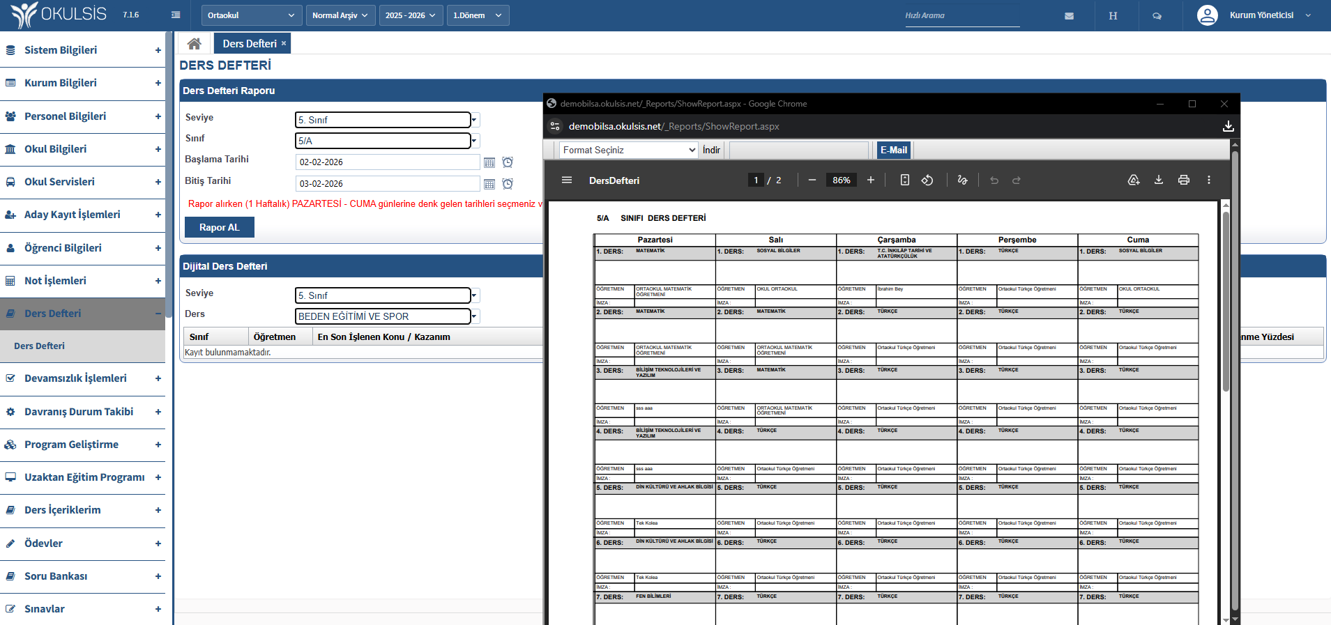Dijital ders defteri ile müfredat takibi